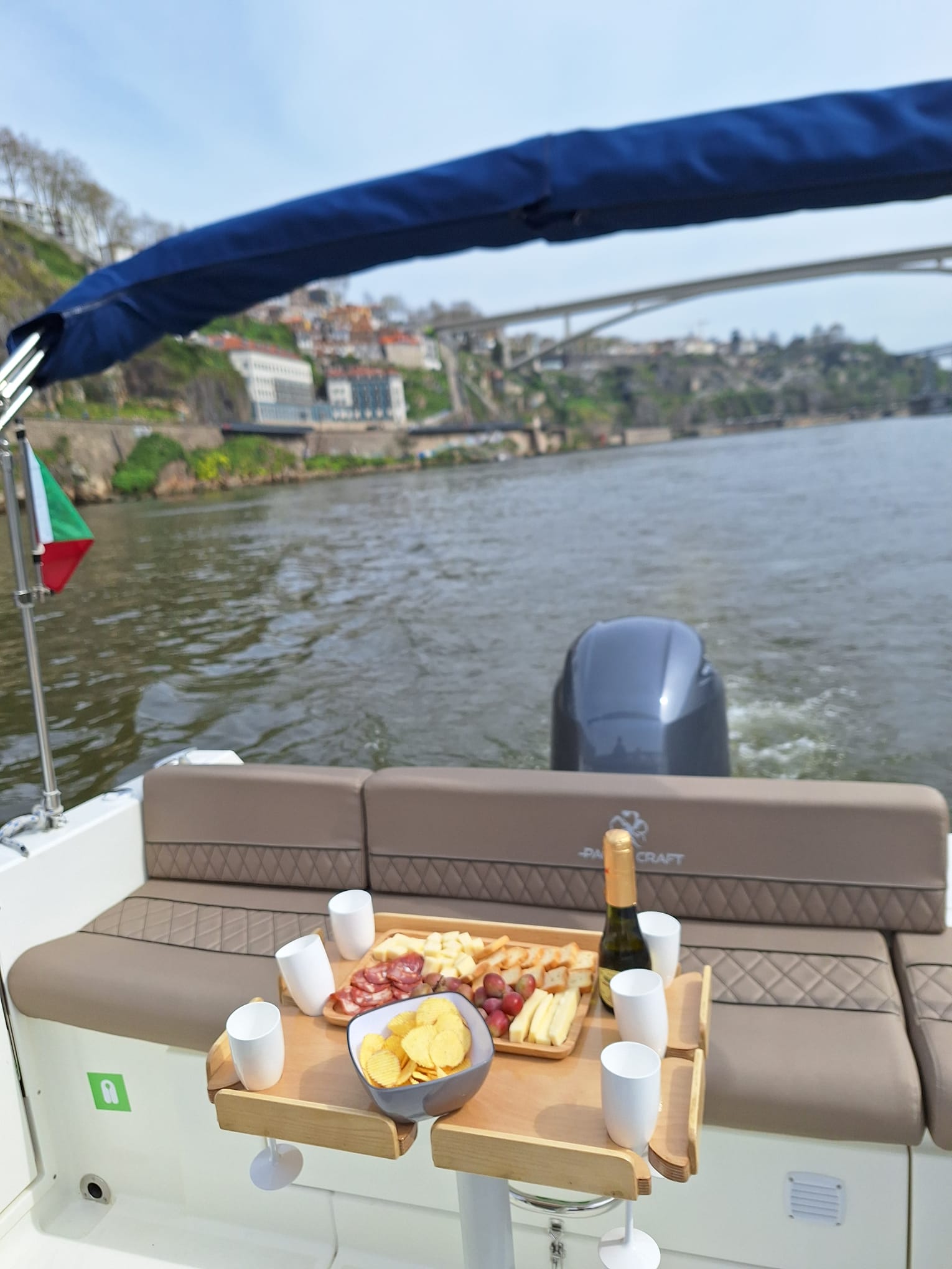 Passeio Privado no Rio Douro com Degustação de Produtos Regionais Marina do Freixo, Ponte do Freixo, Ponte São João, Ponte D. Maria Pia, Ponte do Infante, Ponte Luis I, Cais da Ribeira, Ponte da Arrábida, Foz do Rio Douro, Estuário, cais de Gaia, Marina do Freixo. Bebida de boas vindas e tábua de produtos regionais Duração: 2 horas; 3 horas |